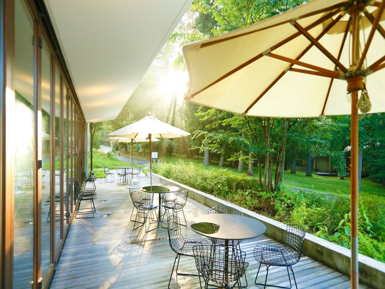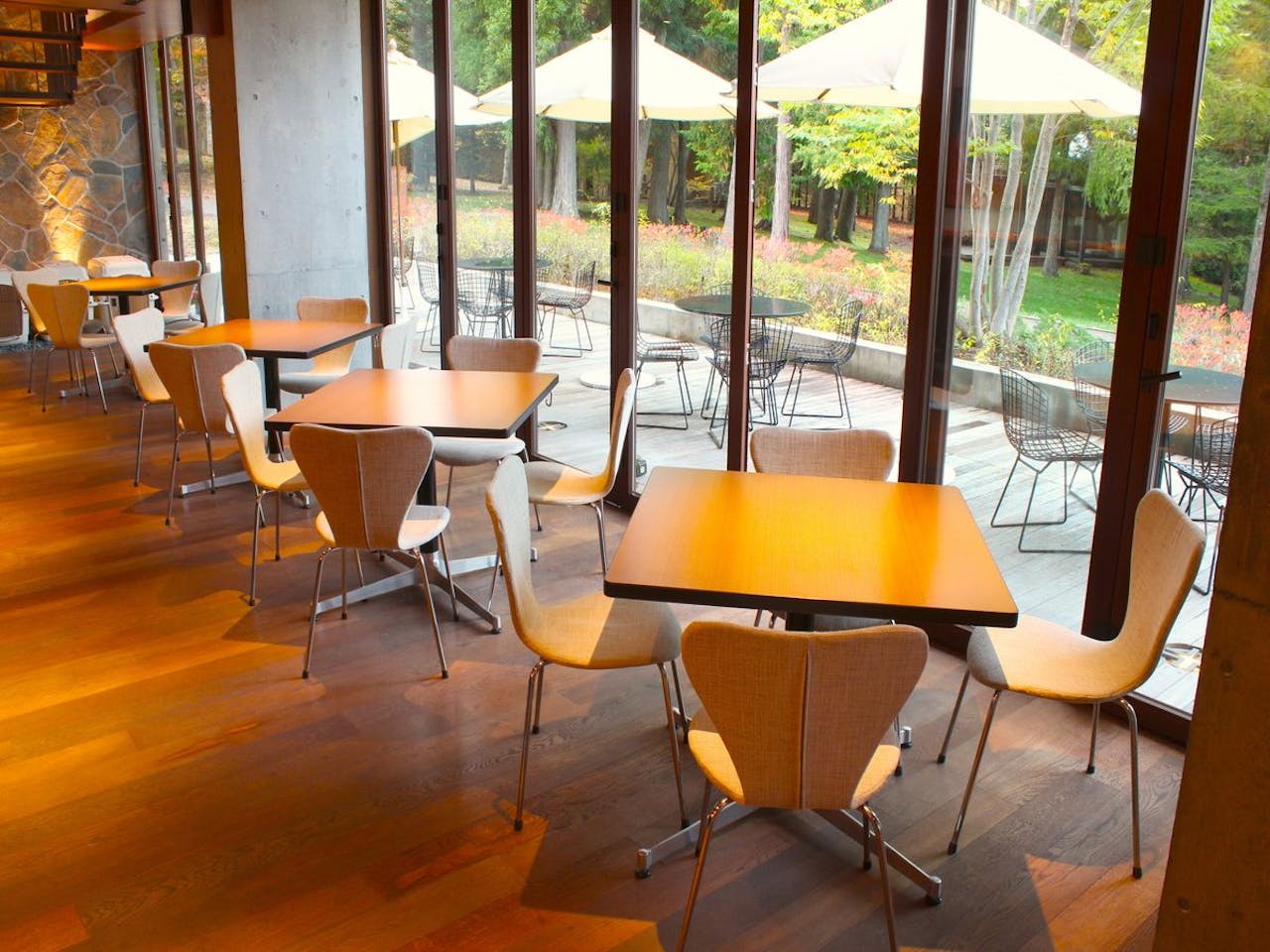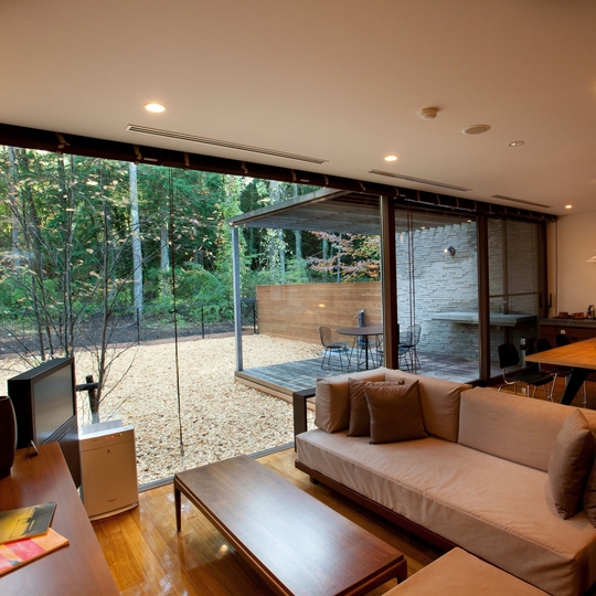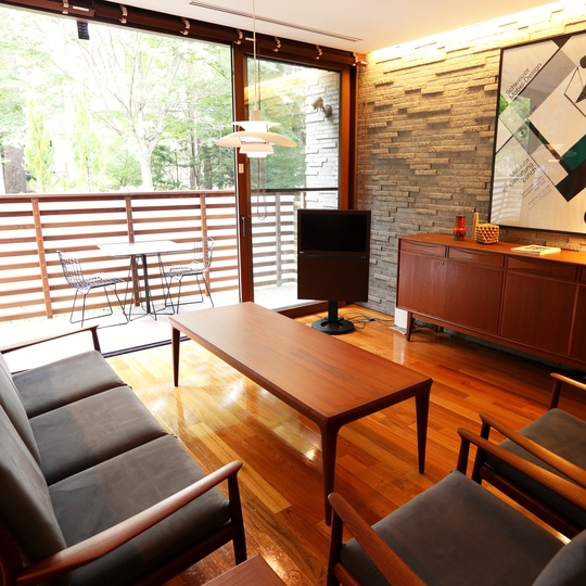 大きな窓から富士の森を間近に感じられる開放的な空間です。