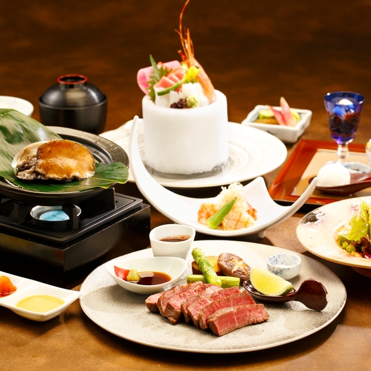 大自然に囲まれた上質でスタイリッシュな空間で、旬の味と厳選した素材を新しいスタイルで提供する創作日本料理。赤坂紀尾井町料亭出身の料理人が腕をふるいます(月ごと、仕入れ状況等により料理内容は変わります)。