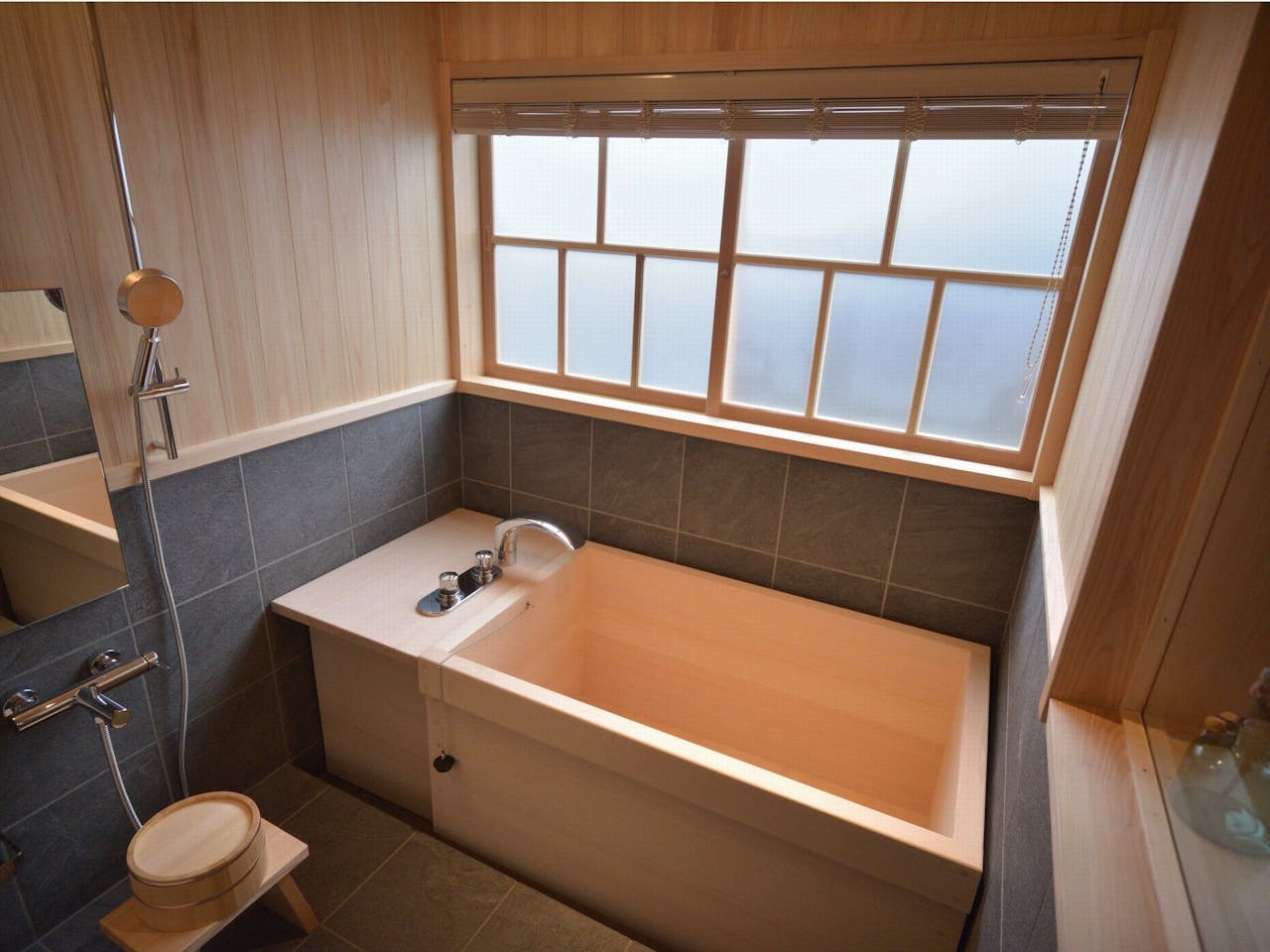 香りのよい檜風呂や半露天の陶器風呂を備えた客室もございます。