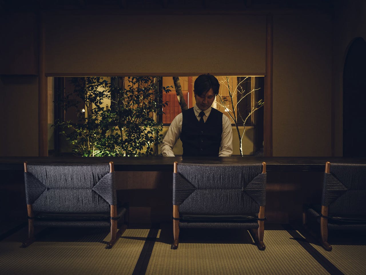 エントランスをくぐり、打ち水のされた石畳を歩めばそこは、静けさに包まれた別世界。坪庭の緑に目を潤し、そよぐ風を感じながらお部屋で寛ぐ。